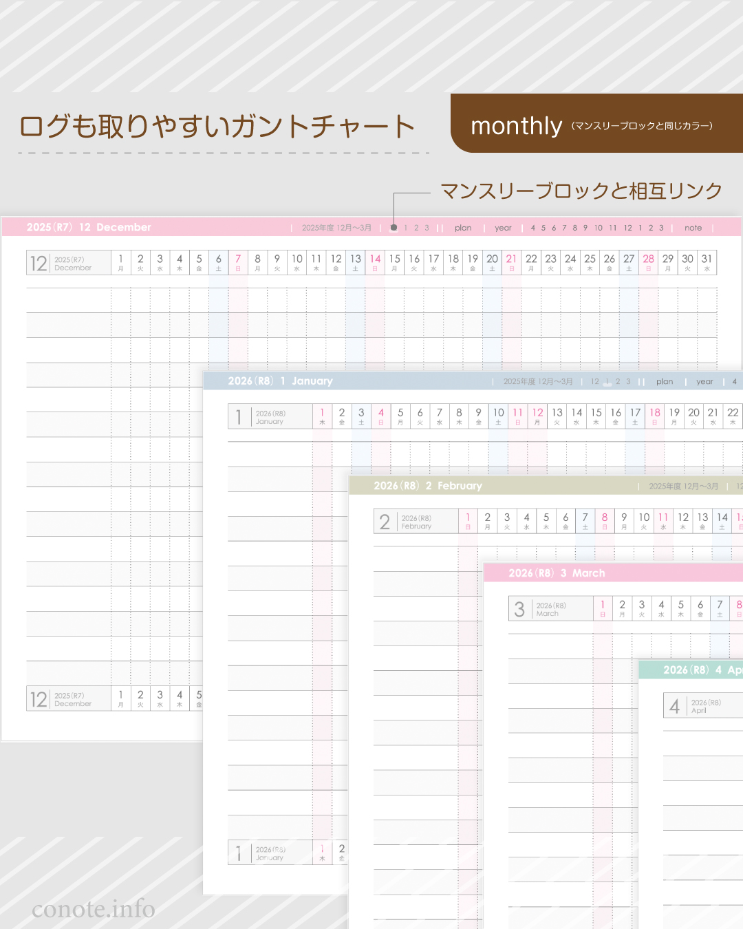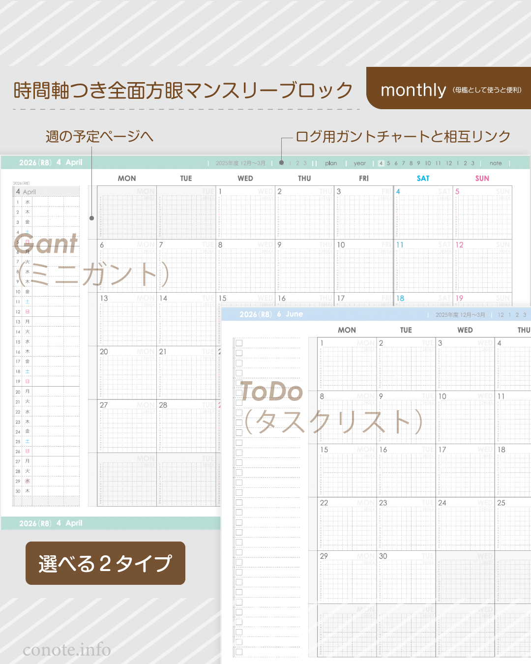 ・monthly:ブロック&ミニメモ欄(2タイプ:ガントor ToDo)