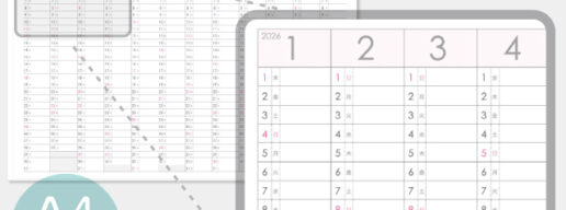 2026年1月始まり・4月始まり年間カレンダー(縦)A4